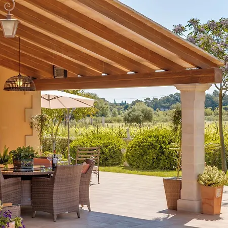 Willa Es Vinyo dysponuje tarasem z widokiem na górę oraz basenem.